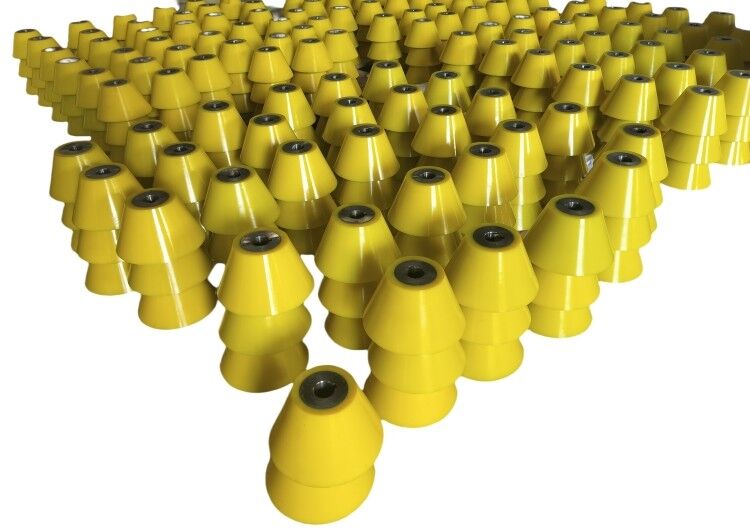 For metal hub coverings, we utilize various polyurethane types with hardness ranging from 70-95 Sh°A, selected based on intended wheel usage. This ensures:
